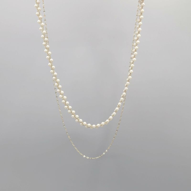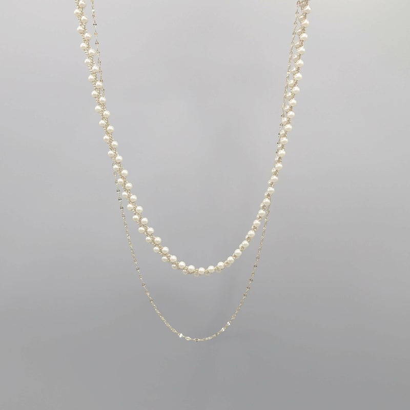 繊細な細めチェーンとパールが上品な2連ネックレス