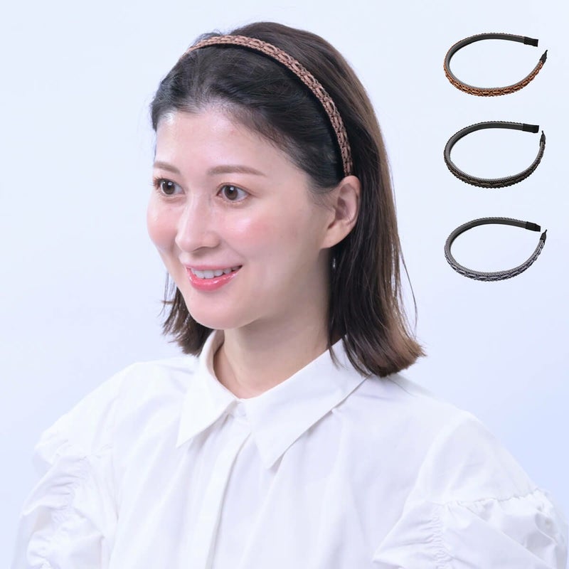 2重編み込みが施されている洗練されたデザインです。シンプルなカラーのため、髪に馴染みやすくカジュアルにお使いいただけます。