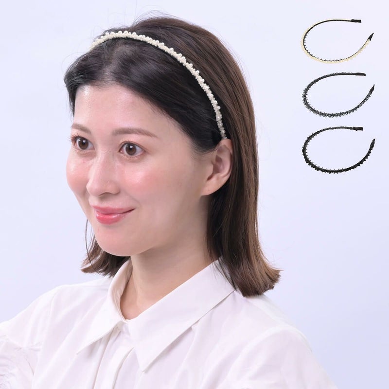 パールとビーズのデザインカチューシャ。同色のパールとビーズを組み合わせたデザインは落ち着がありながらも、高級感のあるデザインです。デイリー使いにはもちろんパーティーシーンにも幅広く活躍します。