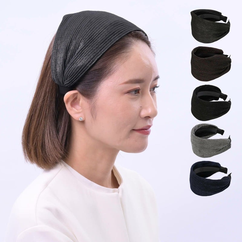 伸ばすと最大15cm(およそ)になる幅広カチューシャ。頭をすっぽりと隠してくれます。とても軽いつけ心地でデイリー使いにも重宝します。絶妙なニュアンスカラーがお洒落感をさらにUPしてくれます。つけるだけで簡単スタイリング。