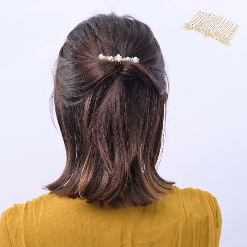 まとめ髪やサイドに挿すだけで簡単に上品なヘアスタイルの完成。アレンジヘアに添えると華やかさがUPします。使いやすいサイズ感とパールとビーズを編み込んだ繊細なデザインが、結婚式やパーティーシーンにも幅広く重宝する一品です。