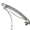ラインストーンの輝きが美しいヘアバレッタ。すっきりとした細長タイプのサイズ感は洗練された印象を与えます。ハーフアップやまとめ髪のポイントに添えるとエレガントに仕上がります。